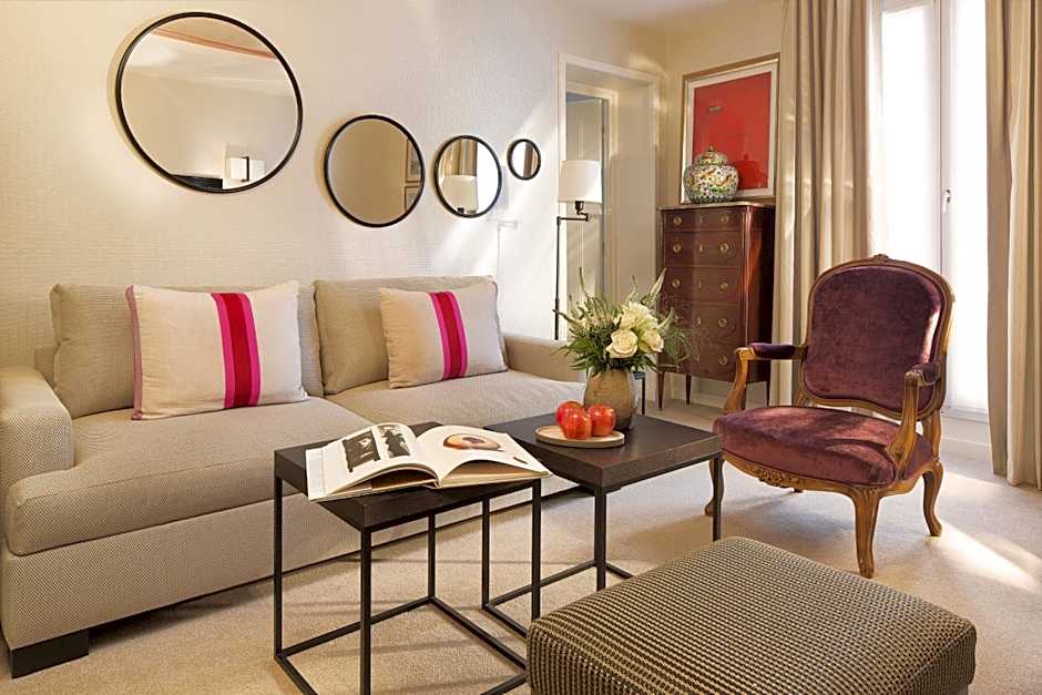 Located on the 5th floor, this suite features a contemporary décor and antique furniture. There is a living area fitted with a sofa and a leather-paneled desk. A large dressing room is provided.